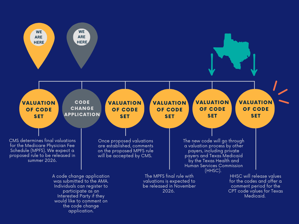 When CMS releases a final rule of the MPFS in late 2026, this will set the reimbursement rates for the CPT codes for Medicare services. Private payers and Medicaid then begin to set reimbursement rates for the new code set. Medicare often serves as a benchmark for other rates that are set.