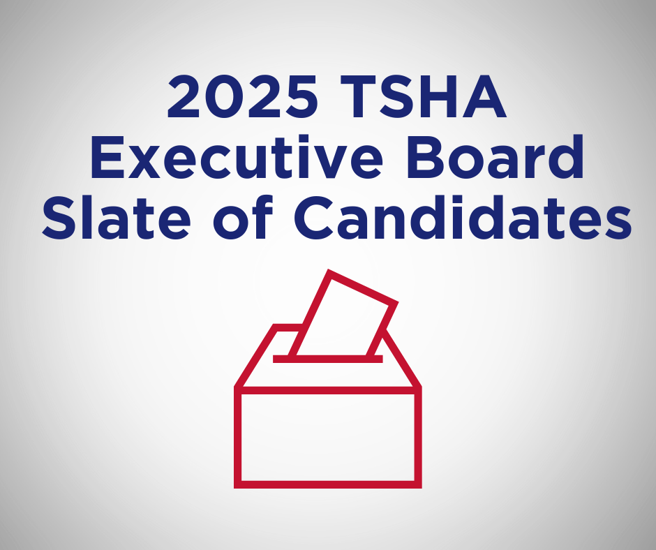 The committee will report to the TSHA membership at the annual business meeting to be held on Thursday, May 1, at 7:15 a.m. at the TSHA Annual Convention in San Antonio. An unopposed candidate may be elected by a majority vote at the annual business meeting.